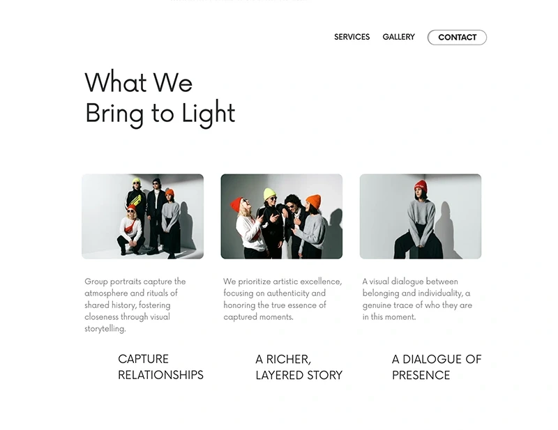 We turn your workbook insights into a design narrative rooted in real, honest storytelling. No grand heroics — just the authentic context of your work, values, and voice."
